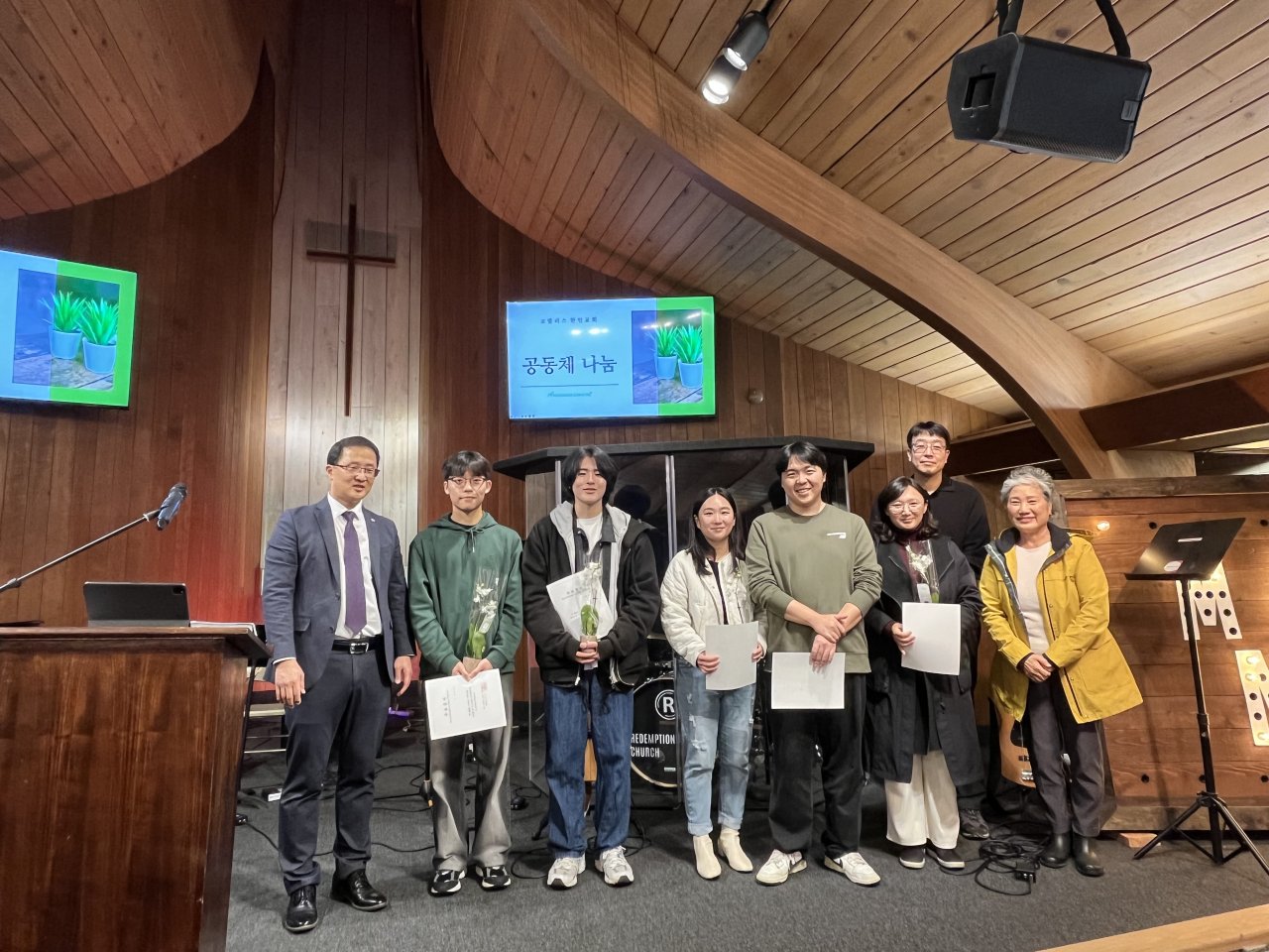 2025년 11월 새가족 수료식(이동규, 이가은, 김종현, 안수진, 송인협, 임재우)